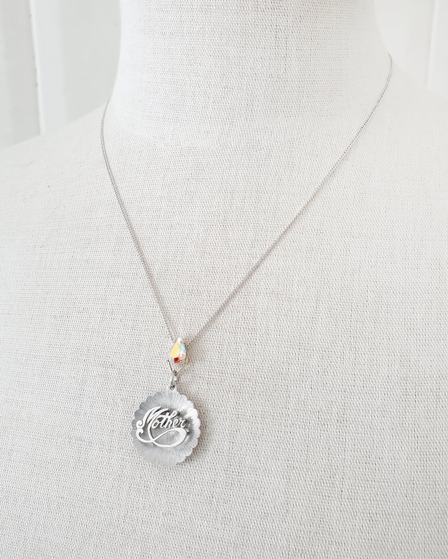 Honoring a retro vibe, this vintage three-dimensional sterling silver pendant is hanging from a bail set Swarovski pear-shaped crystal. This should make Mom feel as special as she is! (And as appreciated as she wants to be!)