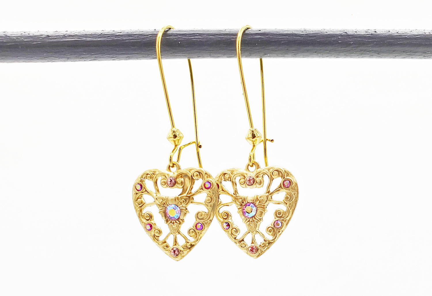 These are vintage stampings that have been polished, sealed, and set with tiny AB crystals. The great thing is that - for all the sparkle - they are so lightweight and airy and you can barely feel them when they're on.