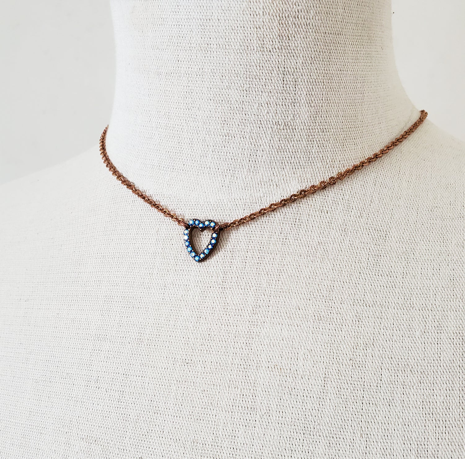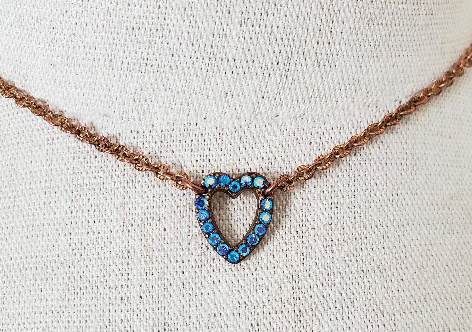 Continuing with the "small, but mighty" collection, this sweet little old heart stamping is embellished with vintage Aurora Swarovski crystals.