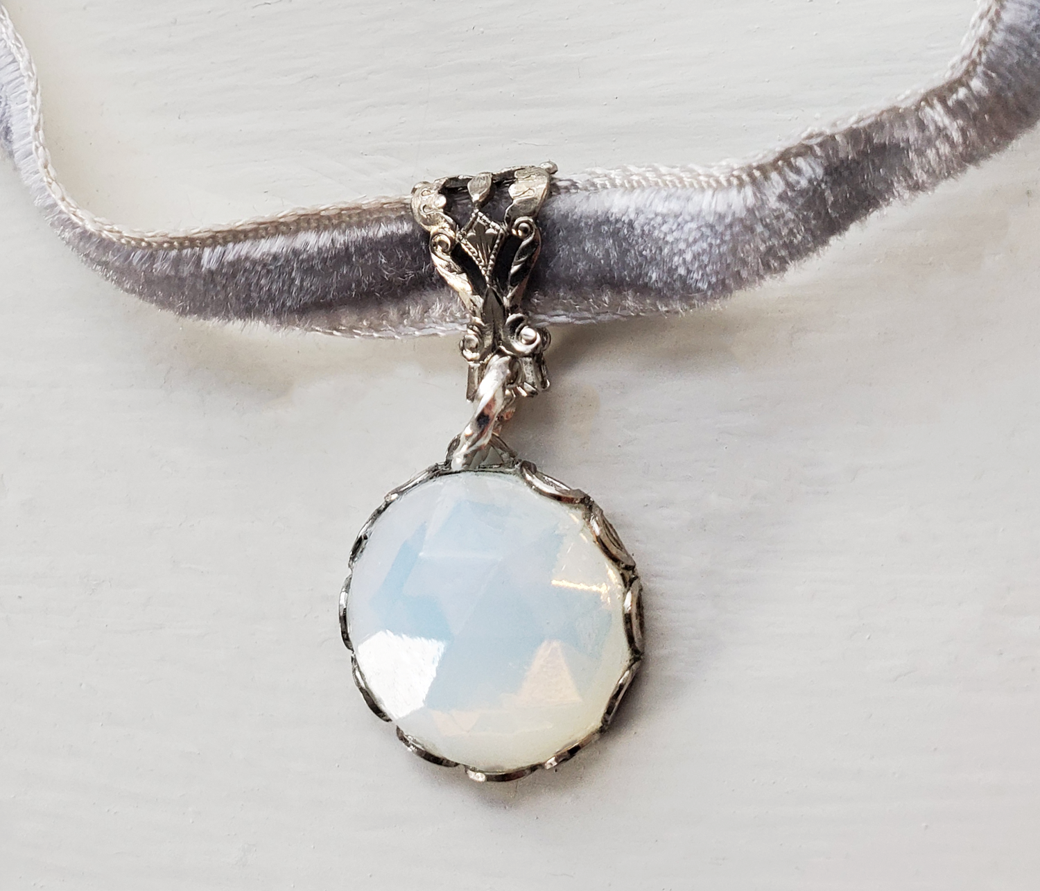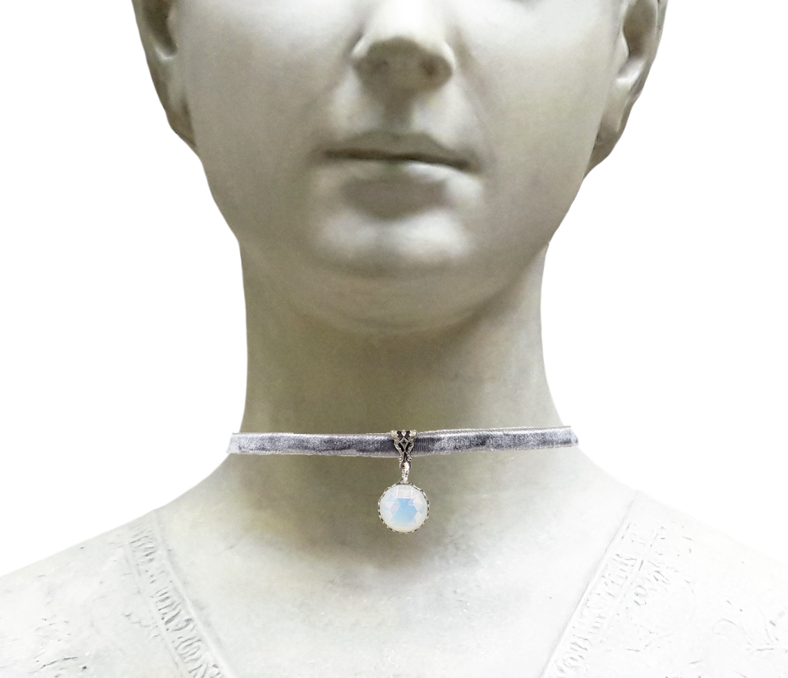 White Opal Velvet Choker