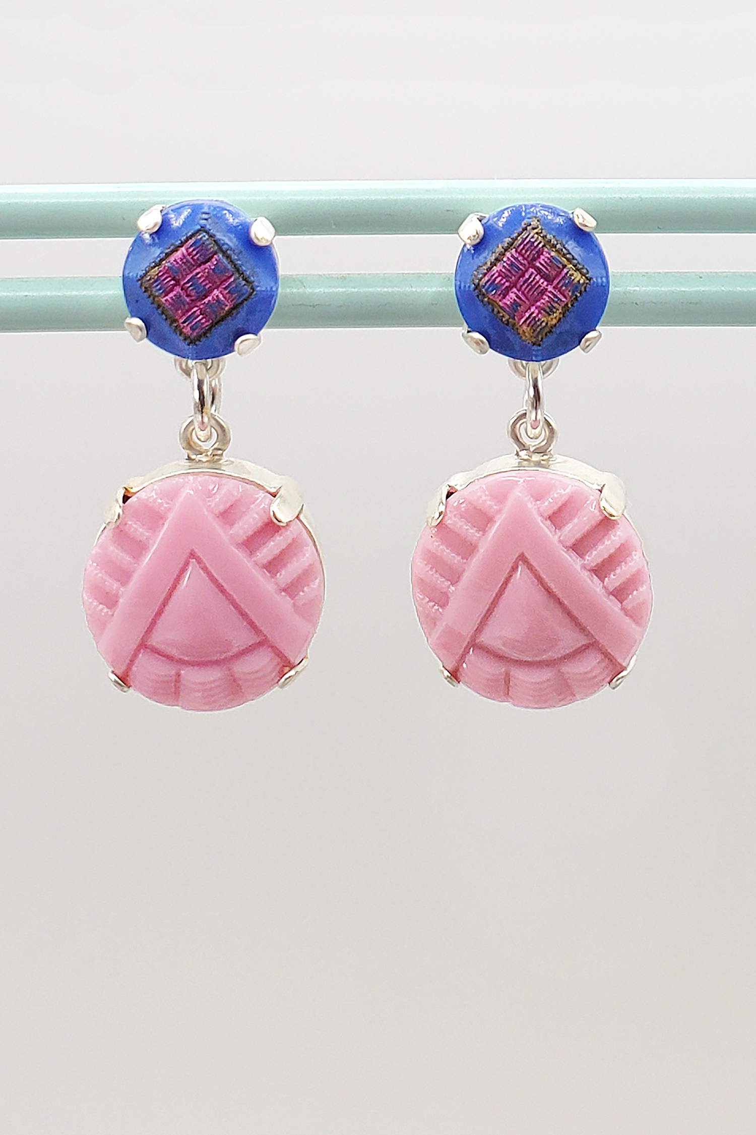 Some mixed metaphors here, with the classic deco design in pink, and the basket weave pattern in hot pink above. Great look on the ears. Great accent to bring into spring and summer.