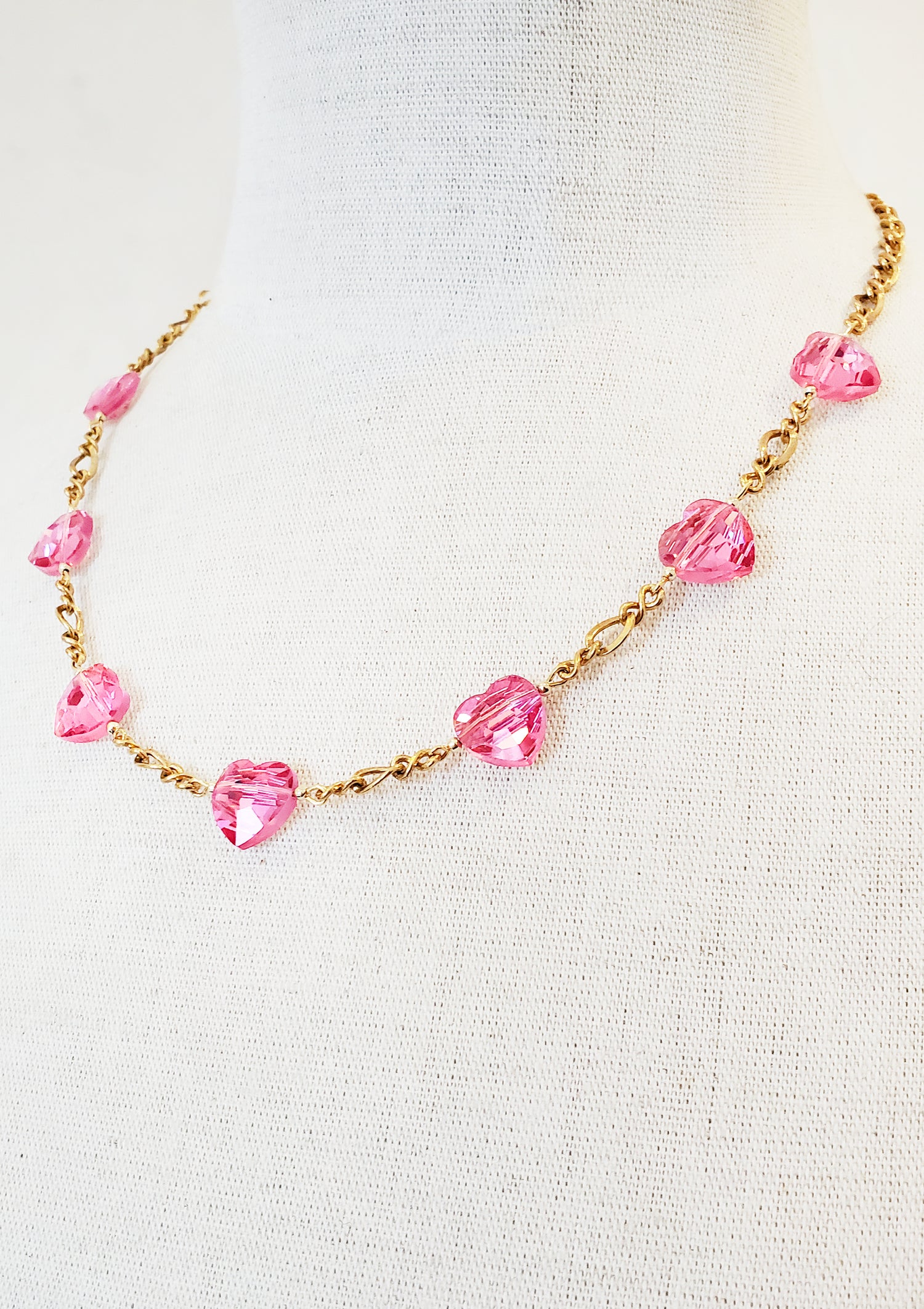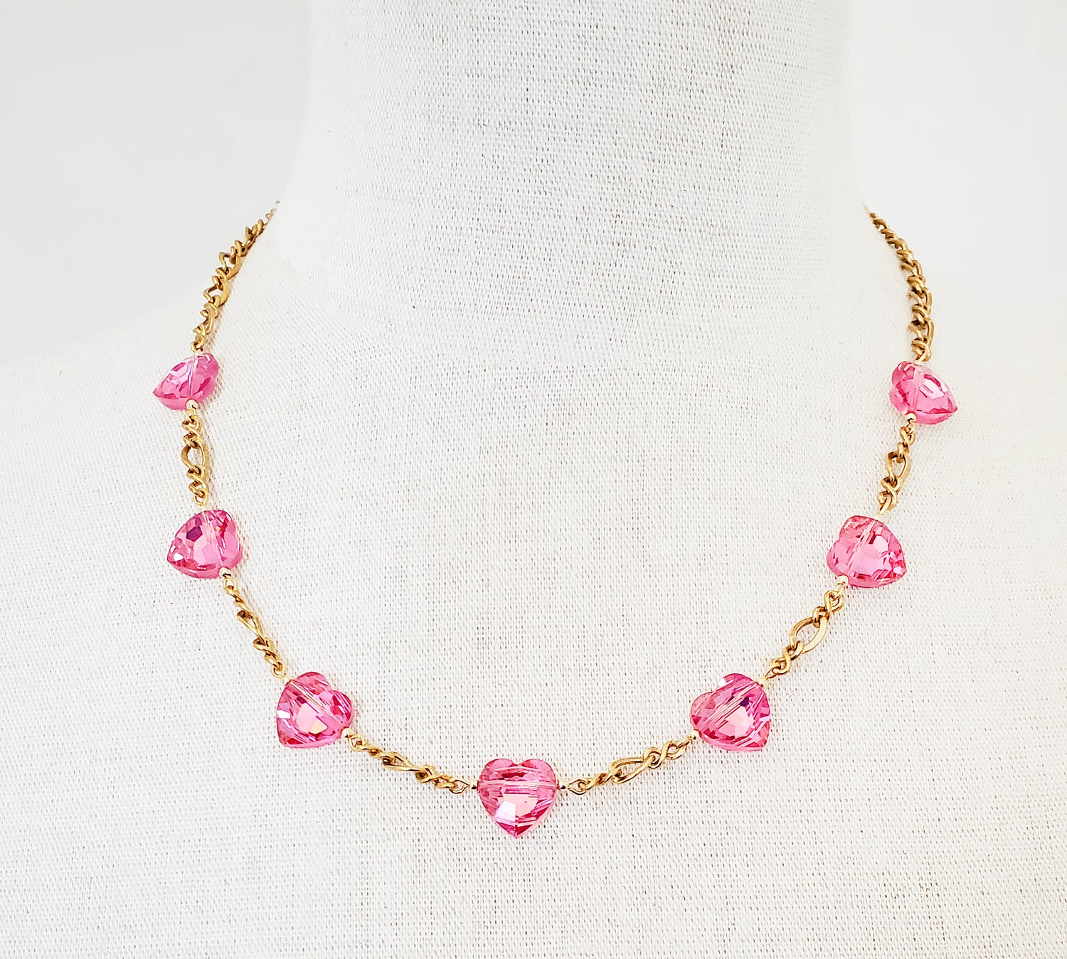 These are absolutely gorgeous and sparkling vintage Swarovski crystal hearts. Discontinued some years back, I had never seen this style before - they have shafts of light like lightning bolts running through them. Twelve millimeters each and hung from a lovely gold plated Figure Eight Chain.