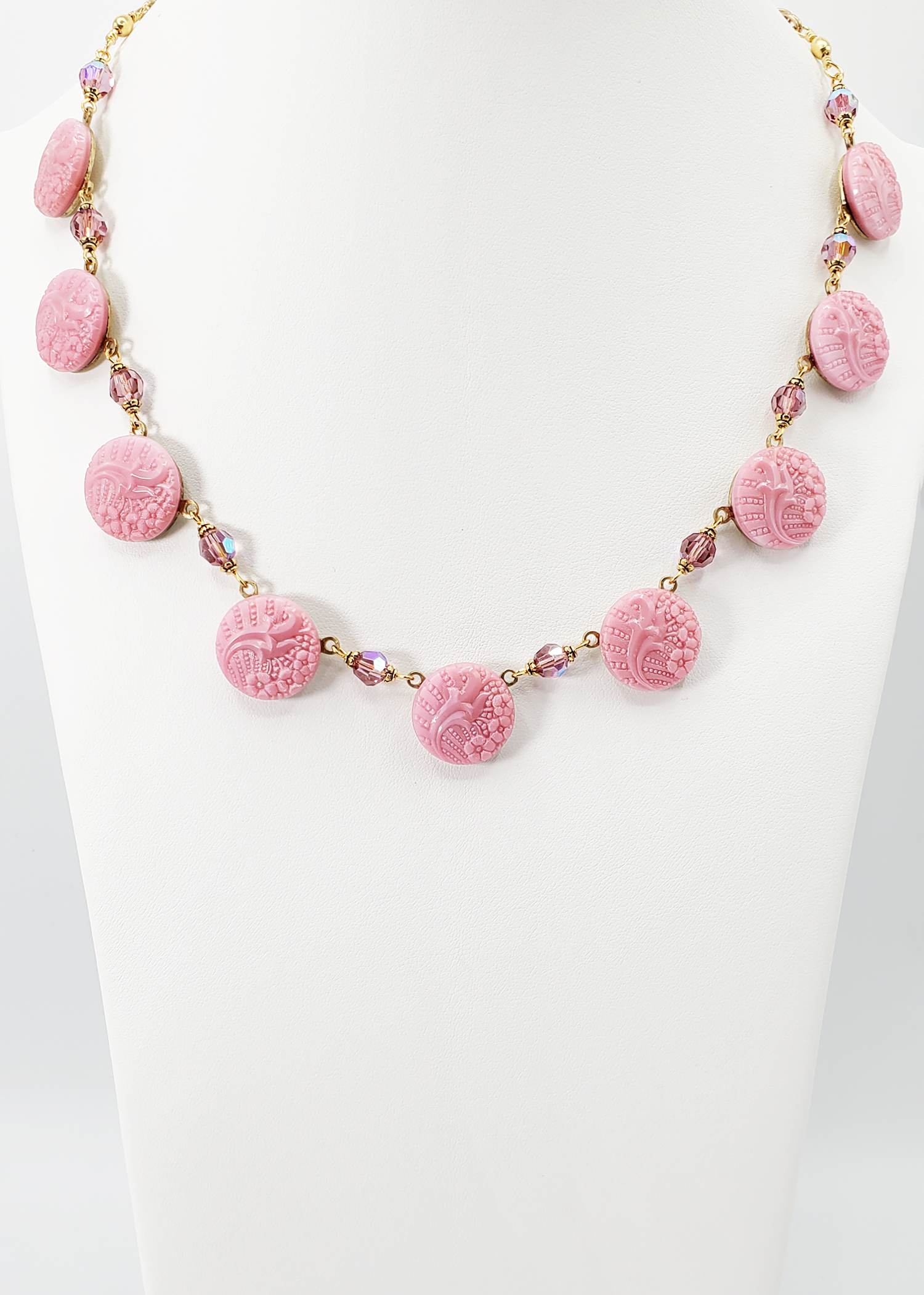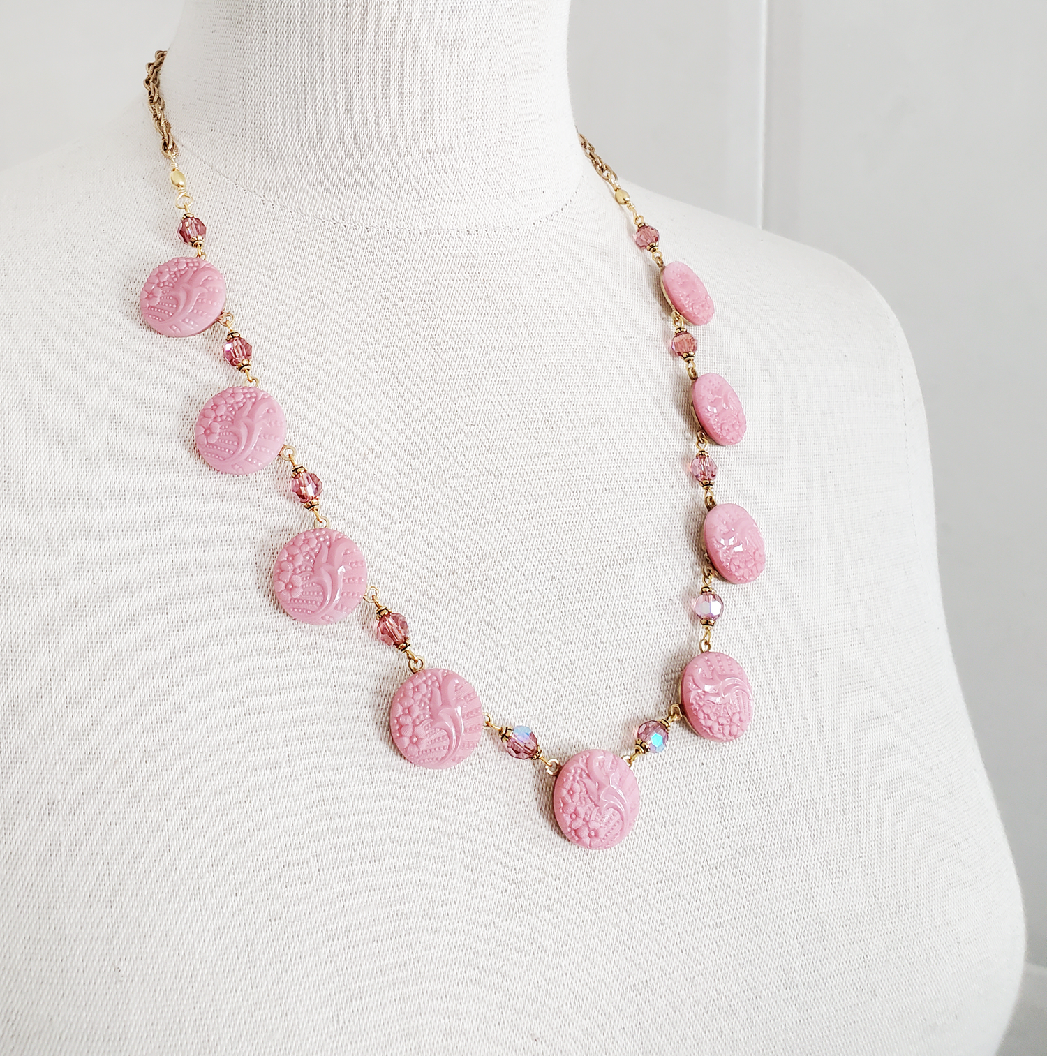Who doesn't love a flourish? These amazing Czech Glass vintage buttons manage to make pink look elegant, even sophisticated. Perfect for grown-up girls and/or women of a certain age (like me).