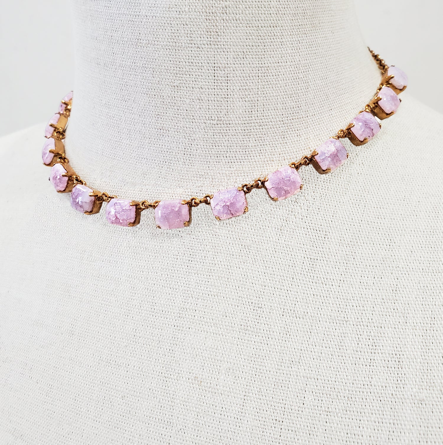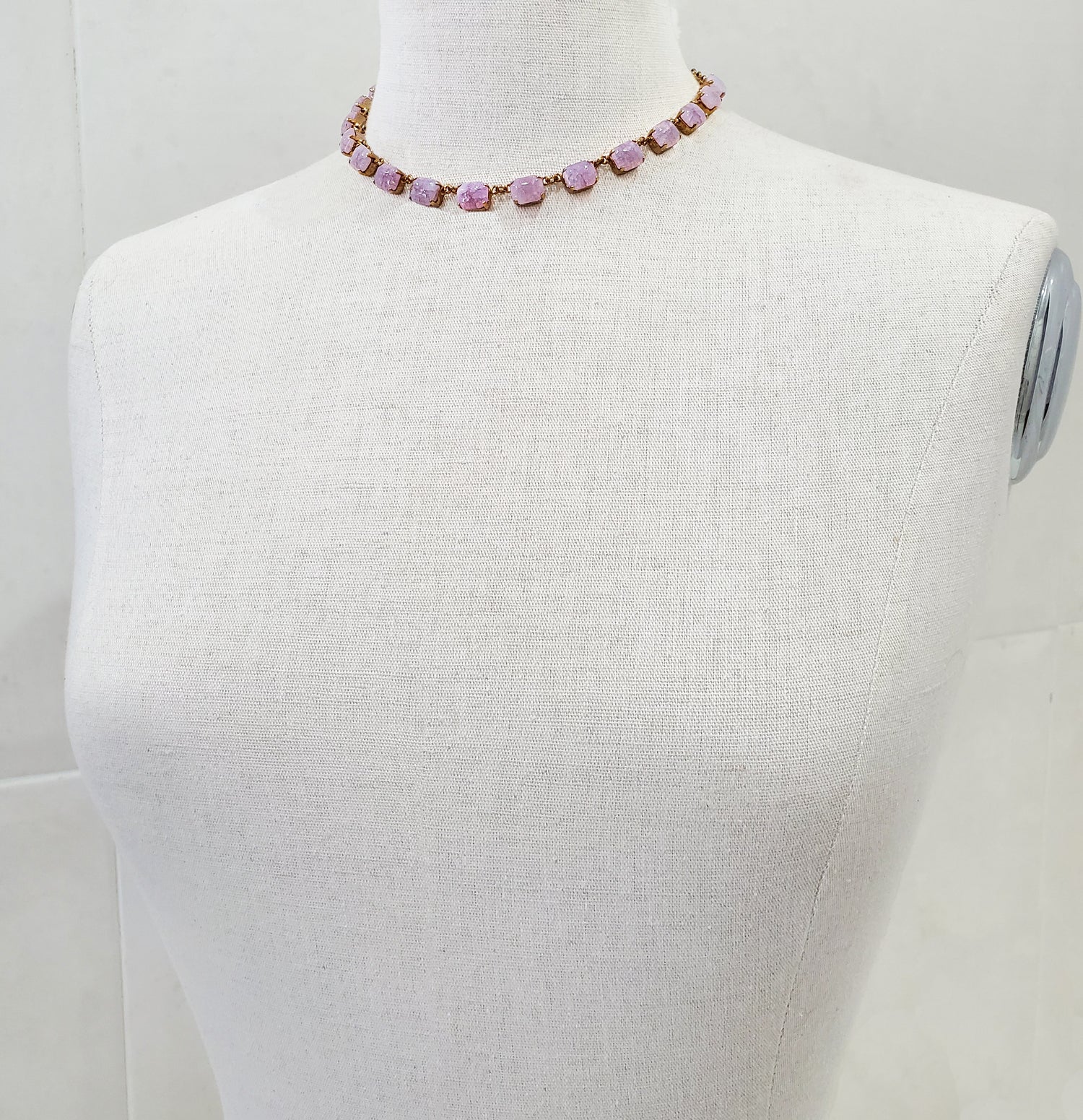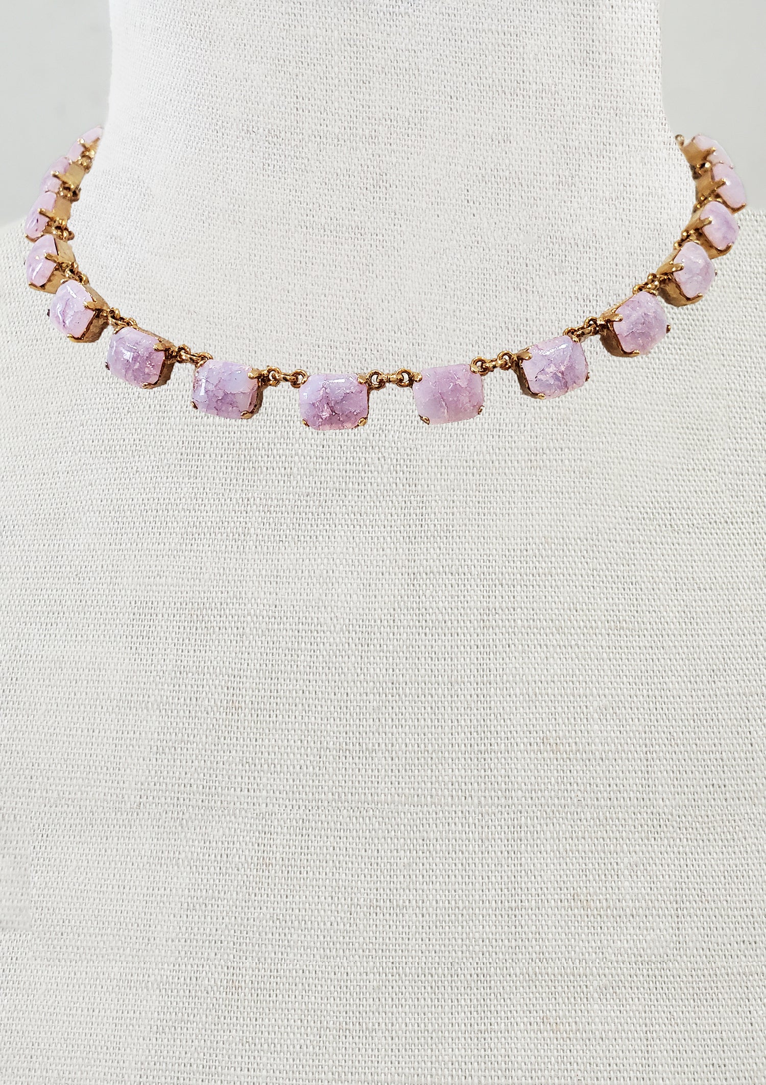 These vintage West German made stones have the look of quartz with subtle flashes of light and visible veining. The 10x8mm octagons are elegant and understated, perfect for everyday wear. Can be worn at princess of choker length.