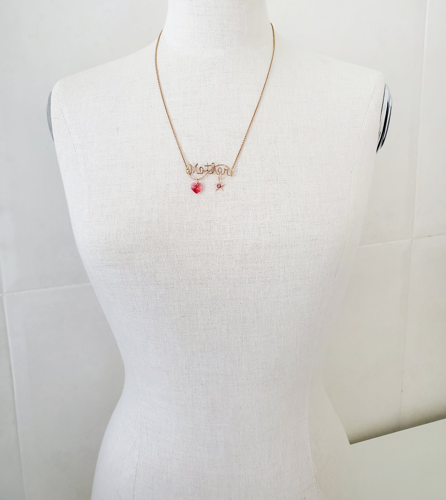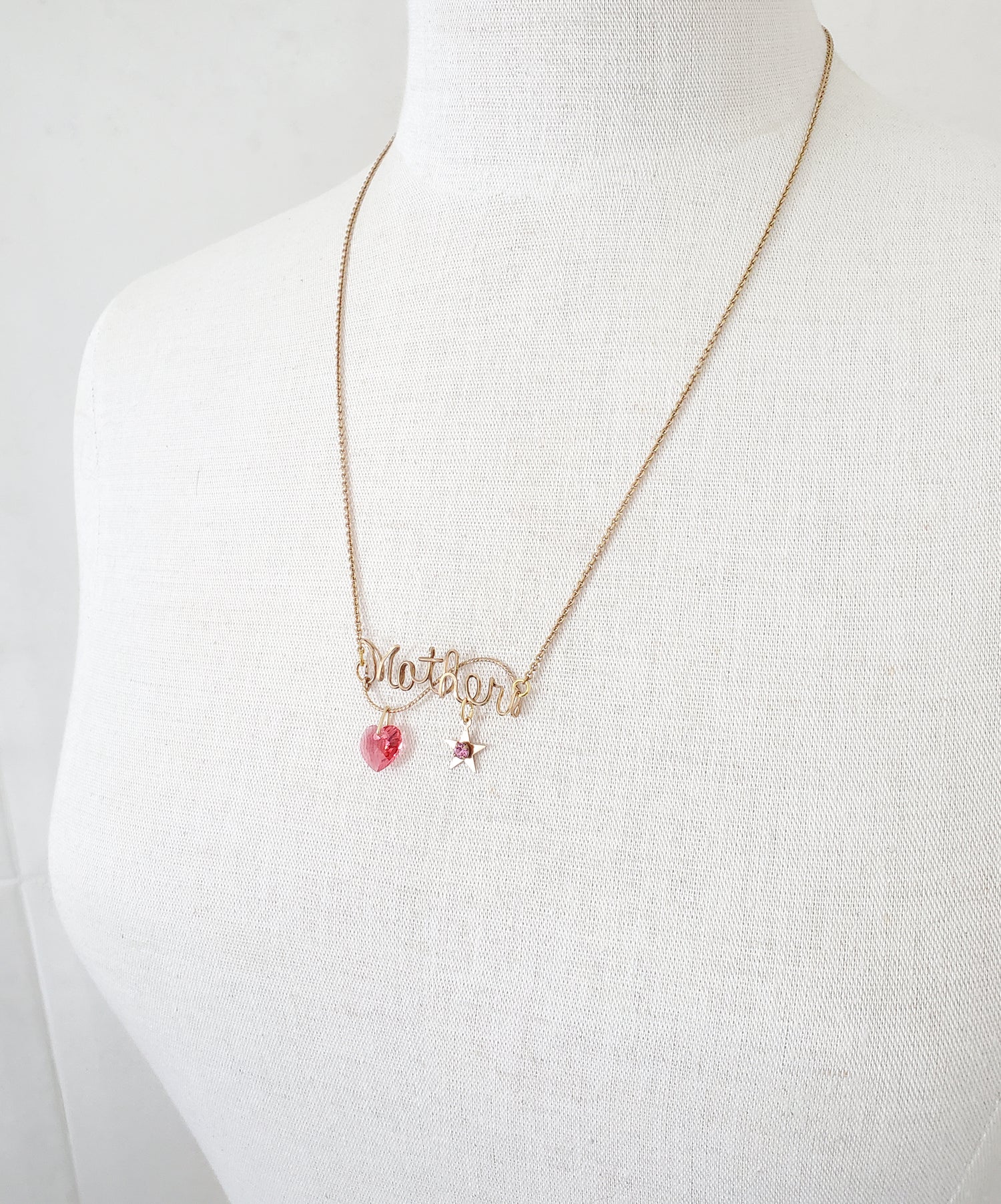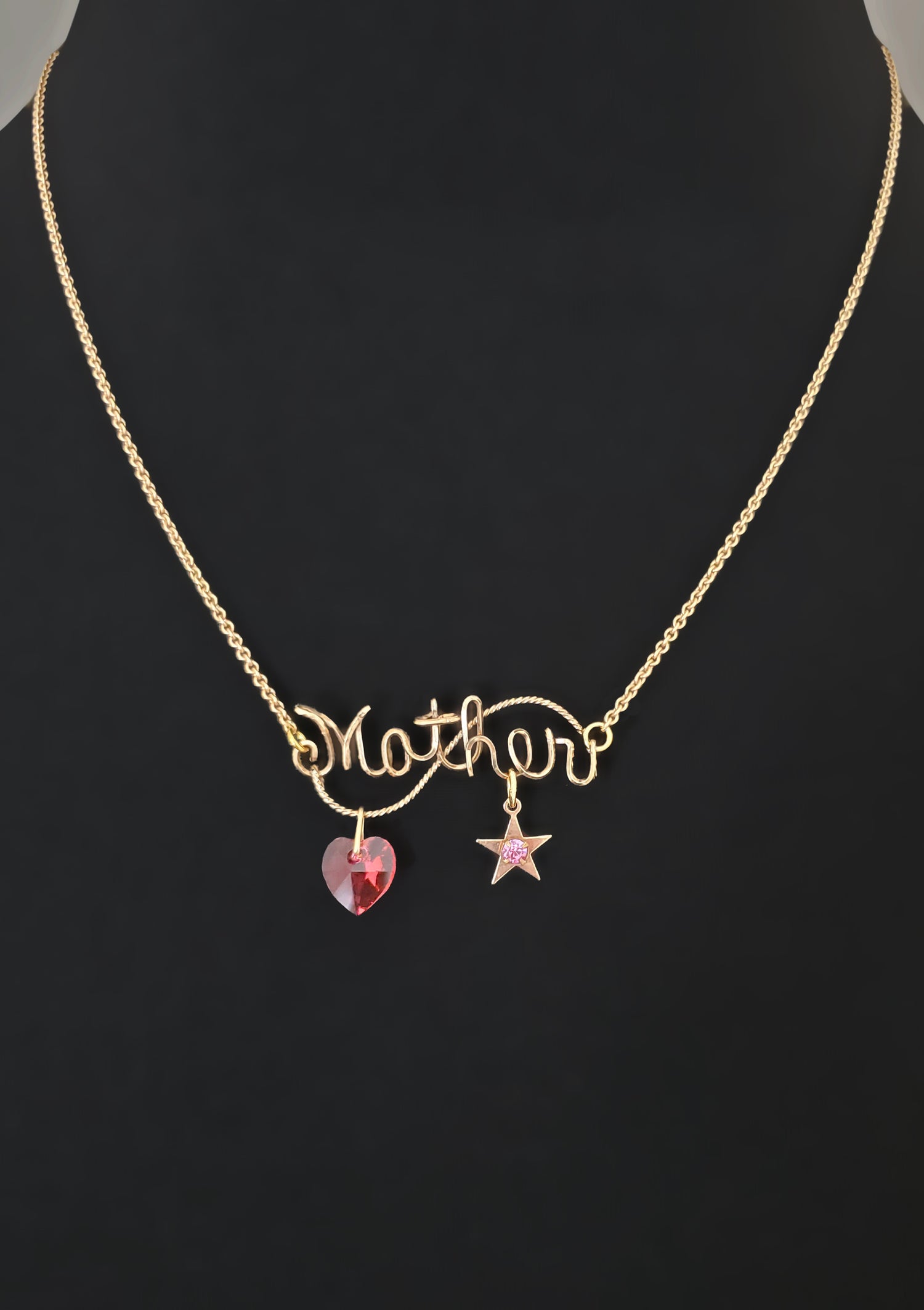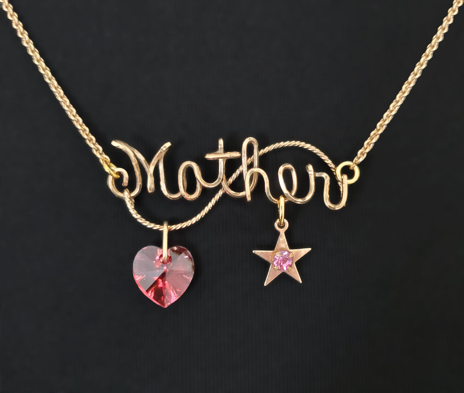 Cool, fun, and funky vintage wound wire "mother" pendant adorned with a Swarovski crystal heart and star set rhinestone.