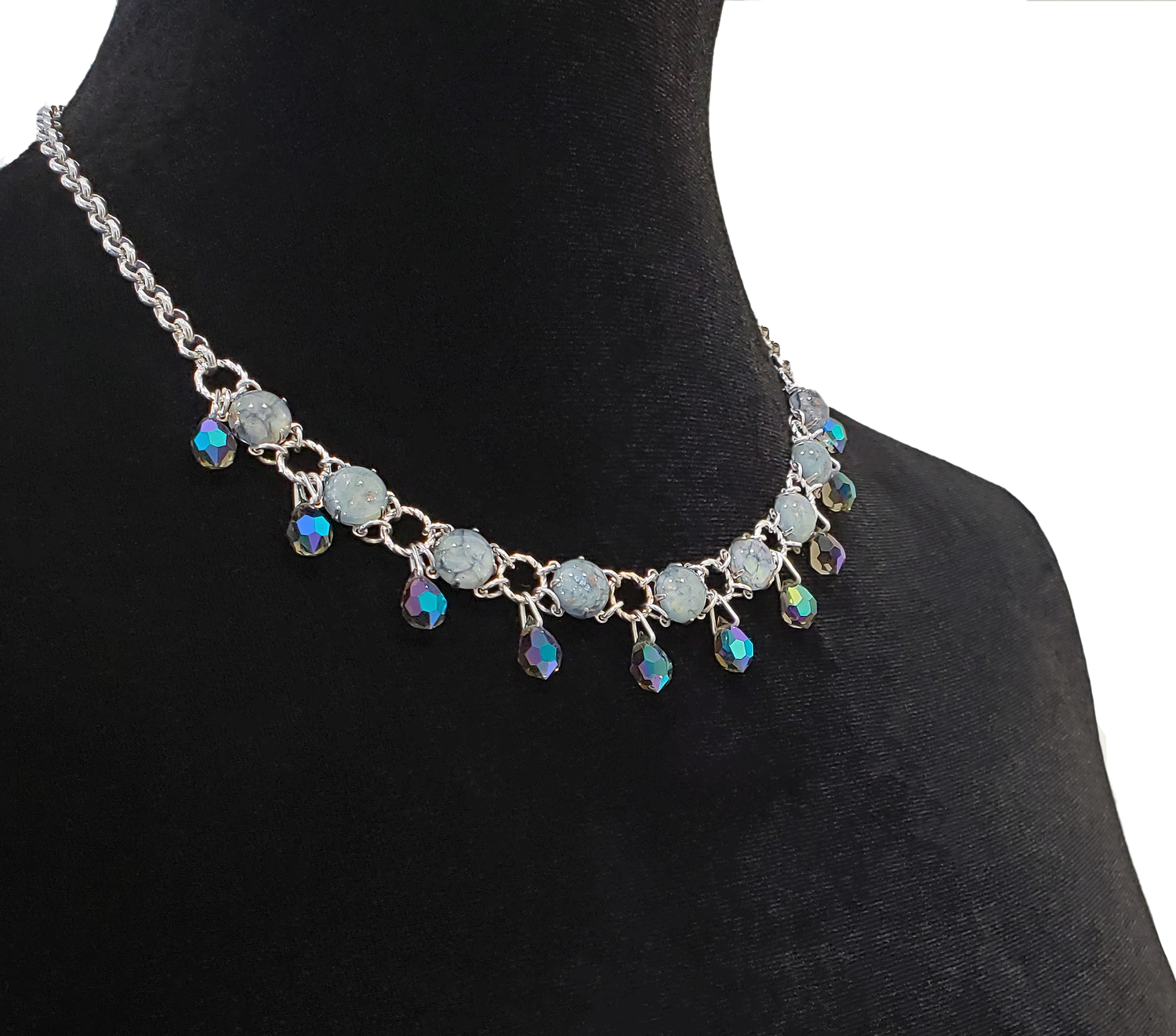 I based this design on some beloved vintage drop necklaces. This was hard to photograph and I was actually thinking, too bad, maybe I'll just have to keep this one. But here it is.