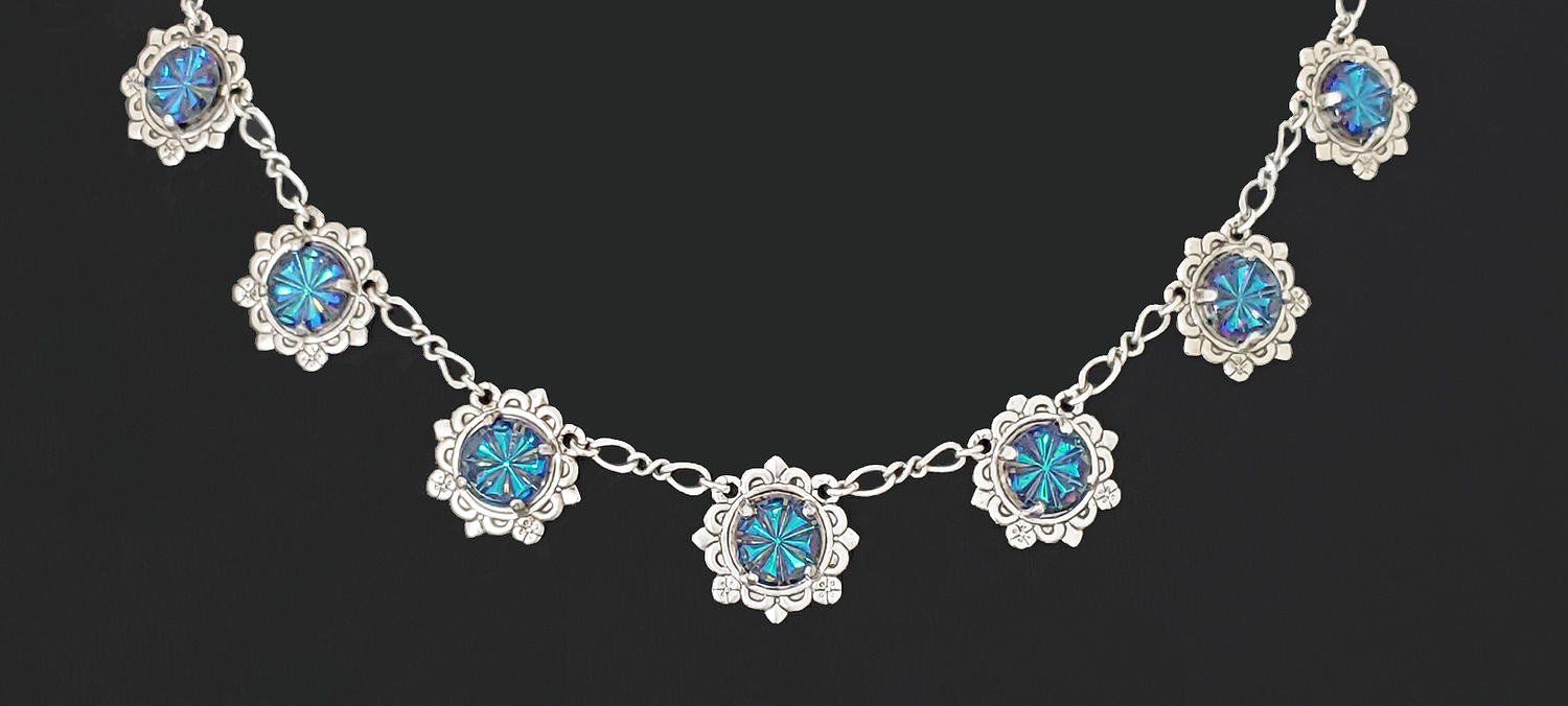These vintage West German starburst rhinestones are small, but mighty. They can make even an old t-shirt look exciting! They are set in antique silver plated settings that were made using 100+ year old machine tools.