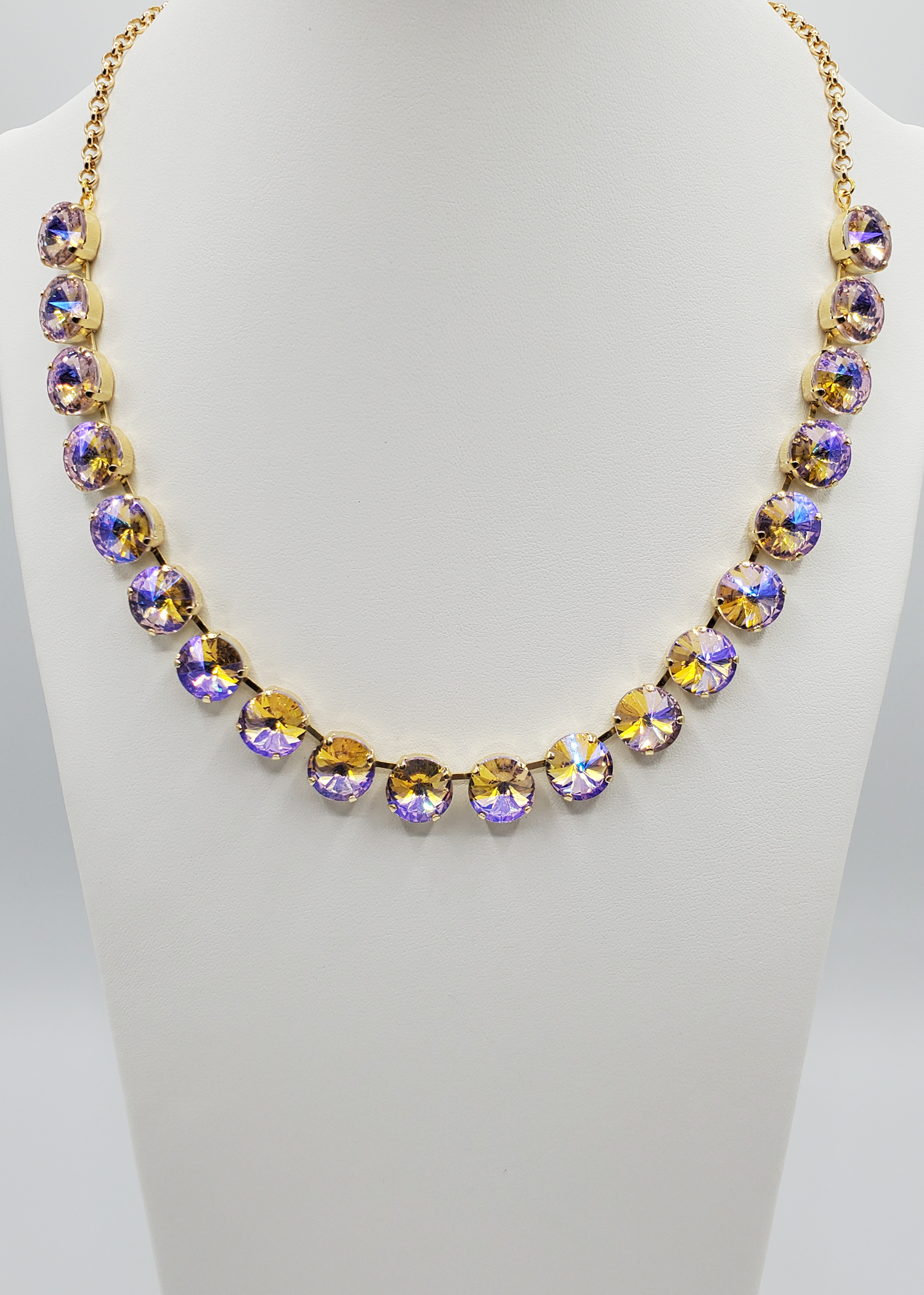 I don't know what the actual name of this color is. All I know is that it's breathtaking. And impossible to photograph in all its glory. The main colors are violets and yellows that, as you can see, change depending on the light, but they always glow. These stones are not being made any more. I have found similar stones, but they aren't exactly the same as these.